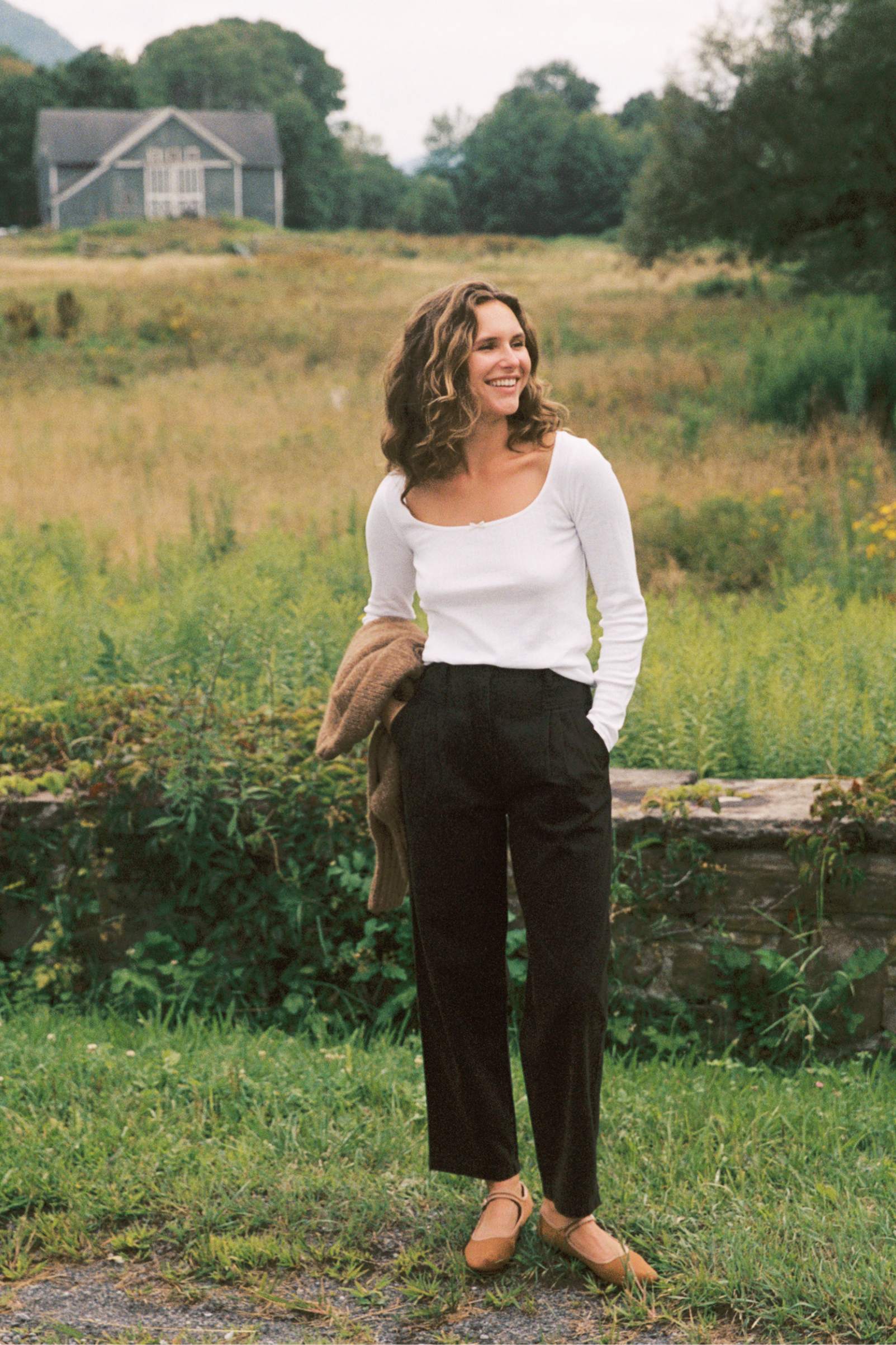 - Slightly pegged leg high rise pants