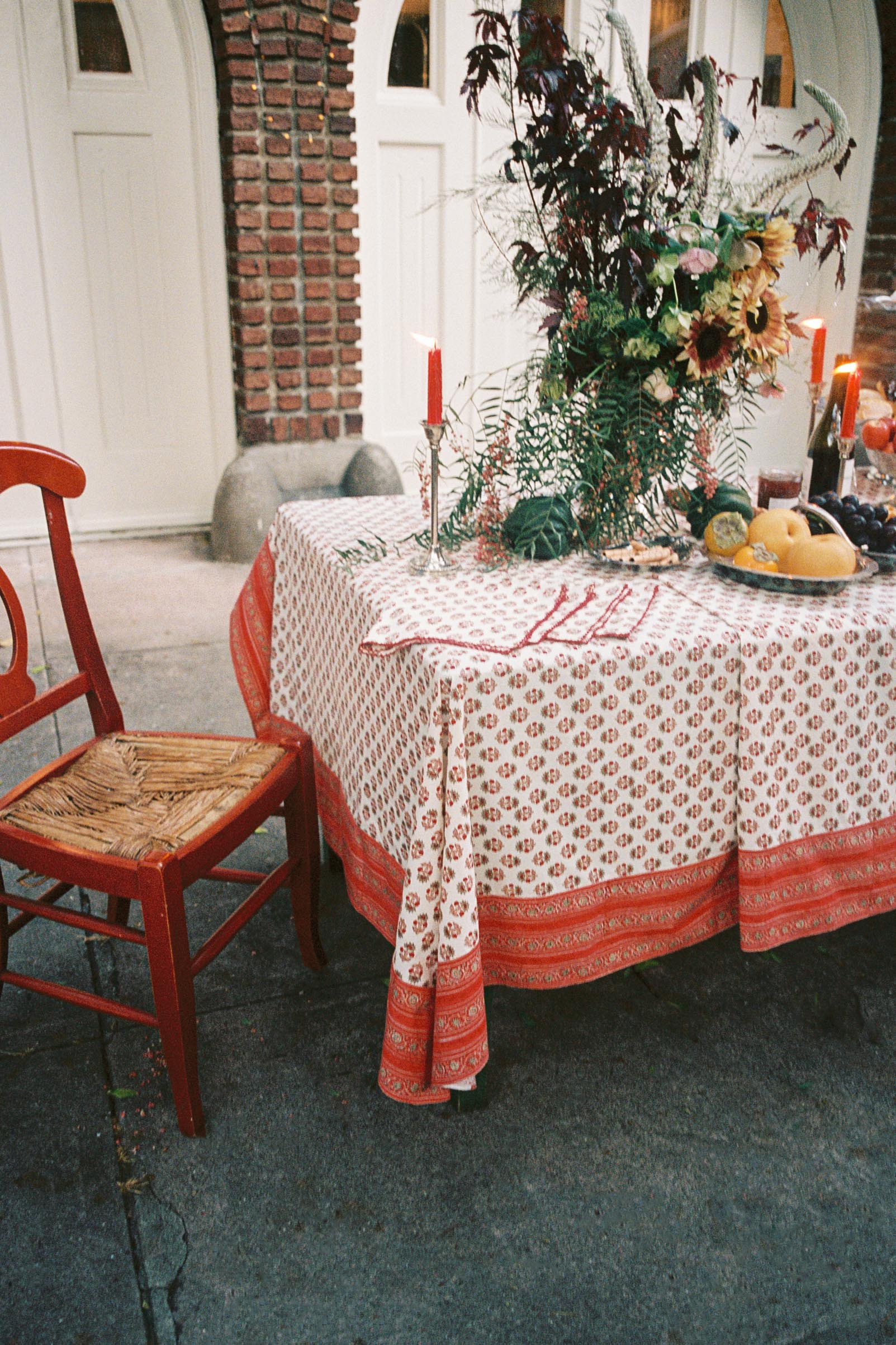 - Block printed cotton tablecloth to dress up your table setting for meals and gatherings